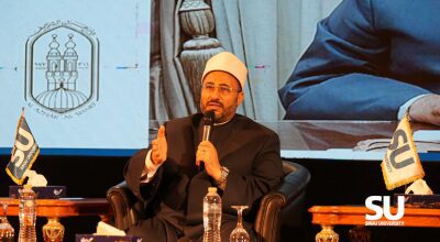 Correcting Religious Concepts and Combating Extremist Ideologies seminar was held under the patronage of Prof. Dr. Gehan Fekry, President of the University, and attended by Prof. Dr. Abdel Hamid Abdou, Vice President for Education and Student Affairs. The session, led by Dr. Mahmoud El-Hawari from the Islamic Research Academy and Sheikh Mesbah El-Arish of Al-Azhar, focused on raising students’ awareness, encouraging moderation, and equipping them to confront misleading and extremist ideas. Participants engaged in an open discussion addressing key societal challenges and the role of authentic religious values in strengthening community resilience.