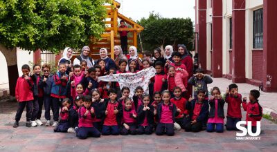 Under the patronage of Prof. Dr. Gehan Fekry, President of Sinai University, students of the Integrated Marketing Communications Department organized a field visit to Ahmed Zewail Primary School in Kantara East as part of implementing the “Protect Him” awareness campaign. The campaign aimed to raise awareness about the different aspects of child sexual harassment.